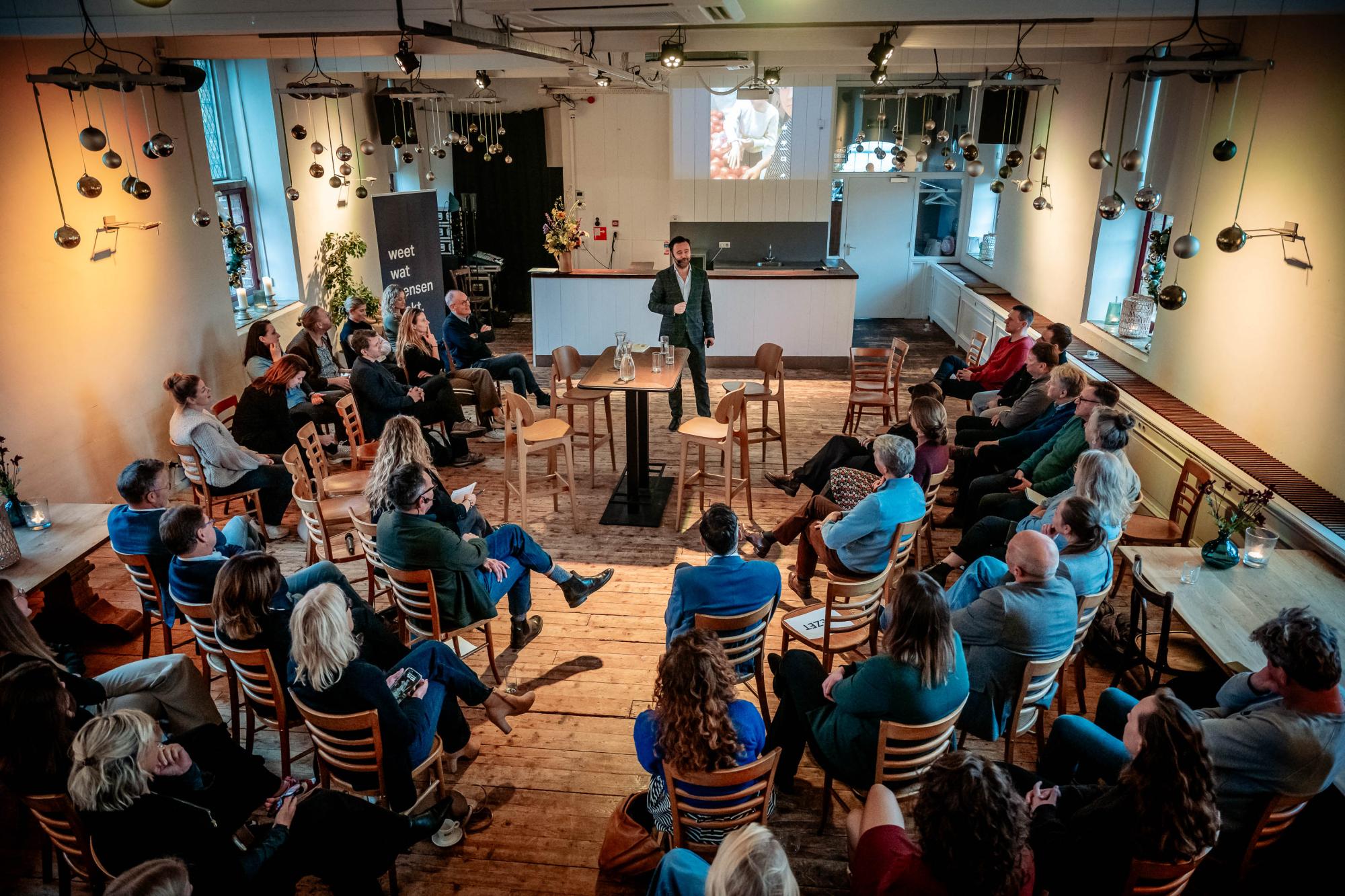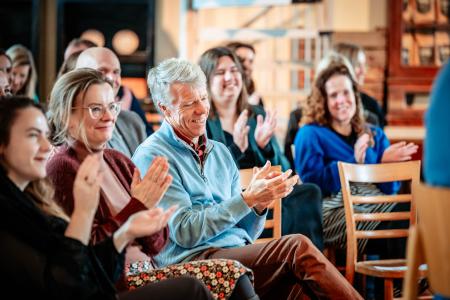 Filosoof en gastspreker Lammert Kamphuis daagde ons uit om perspectivistisch lenig te zijn: niet vast te houden aan ons eigen gelijk, maar juist meerdere invalshoeken te verkennen. Door middel van een toegankelijke benadering van de filosofie reikte Lamphuis drie handige tips uit voor verbinding: